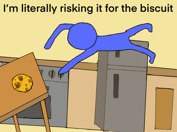 Your grandma baked wonderful delectable biscuits for the day, forgetting that the house is under renovation. Risk your life to protect the biscuits from the furniture falling from the sky and your very hungry friends. Are you willing to literally risk it all for the biscuit? Play the game and find out!